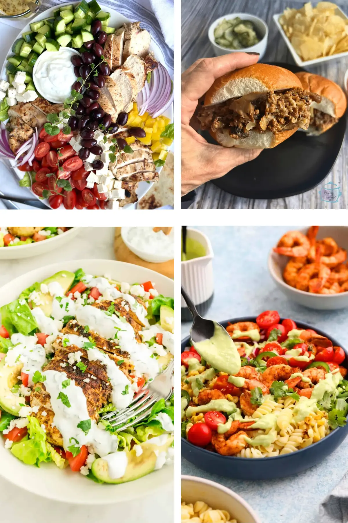 These recipes are categorized into salads, crockpot meals, easy chicken dinners, seafood, beef and pork and vegetarian options.