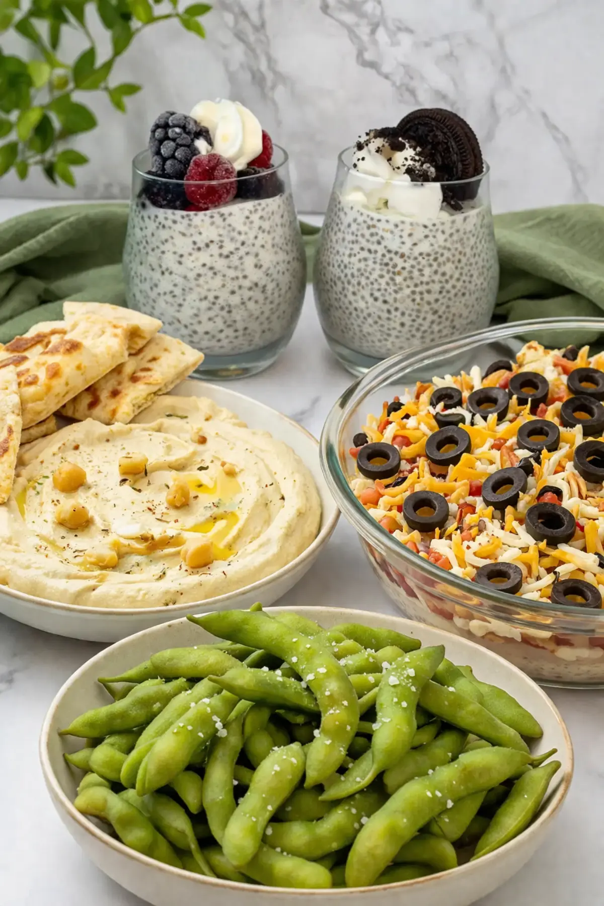 Try Whipped Homemade Hummus (shown above) from Craving Something Healthy, with 8 grams of protein and 6 grams of fiber!