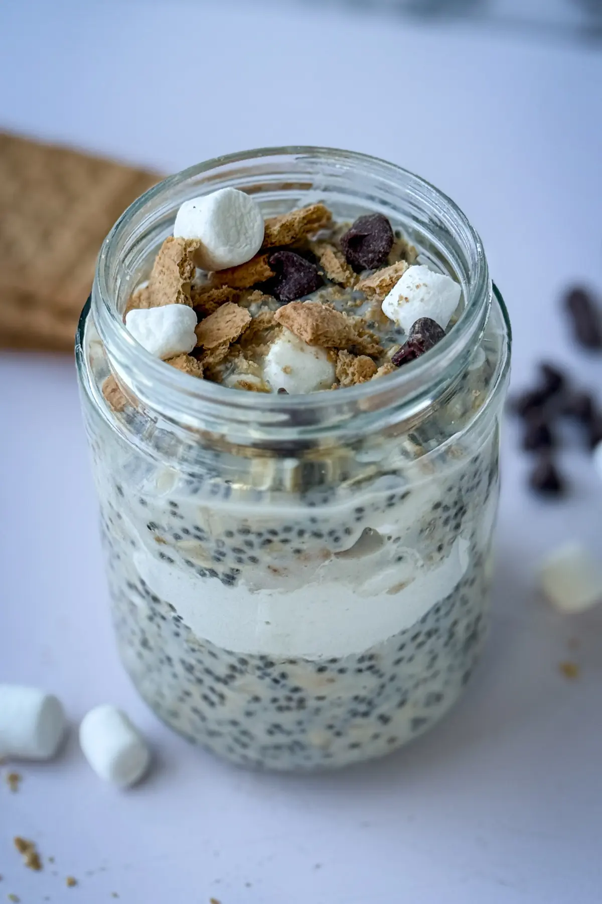 - It tastes absolutely delicious with cozy, comforting flavors of a s’mores. This recipe layers hearty oats with the sweetness of marshmallows, hints of chocolate, and the subtle crunch of crushed graham crackers. It’s like bringing a campfire treat right to your table. This recipe is so good I often eat a small glass as an after dinner “dessert”!